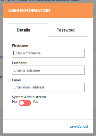 The process to add new users is an important feature that enables you to control who has access and can author and administer JumpSeat guides. You can use this feature to provide relevant information on each user, including: name, role, contact details and control whether the user has system administrator access. From an administration perspective, the numbers of users who have access to JumpSeat Applications, Guides, Roles and Pathways can also be controlled, tracked and measured. This allows you to see when each user profile was created, when they last logged in as well as whether they have system administration access.