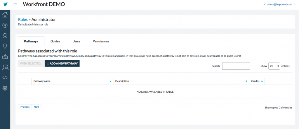 - To assign a pathway to a role, click “Add a New Pathway” or press SHIFT + N