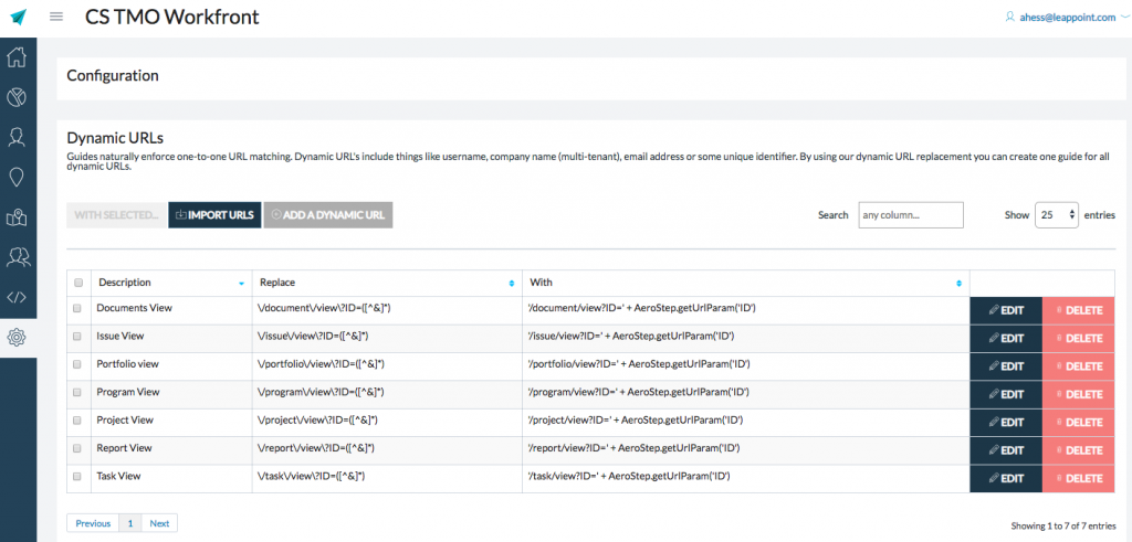 Configuration > Dynamic URL